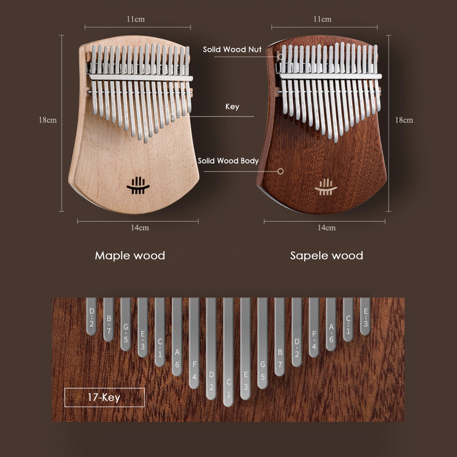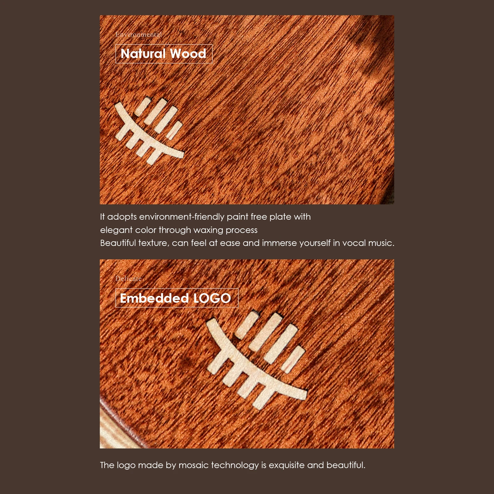 【Материал из цельного дерева 】Красивый дизайн в форме юбки, материал камфорвуда со специальным ароматом древесины; 17 стальных зубцов обеспечивают вам яркий и четкий тембр, и вы также можете создать специальный тремоло с цепочкой сопровождения.