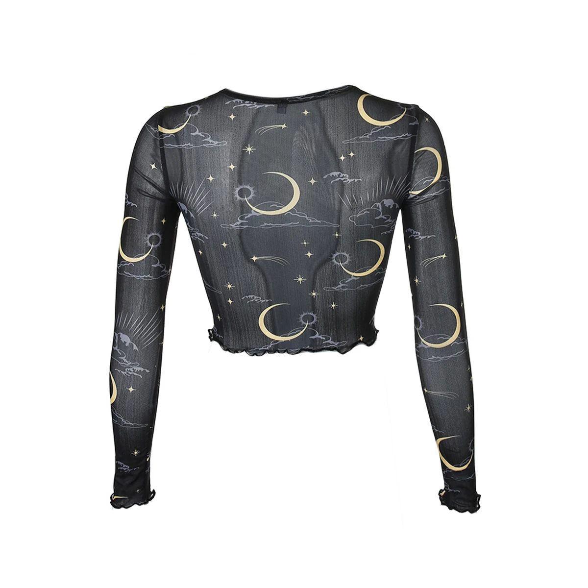 Женская сексуальная прозрачная сетчатая блузка, модные Прозрачные топы с круглым вырезом и длинными рукавами
